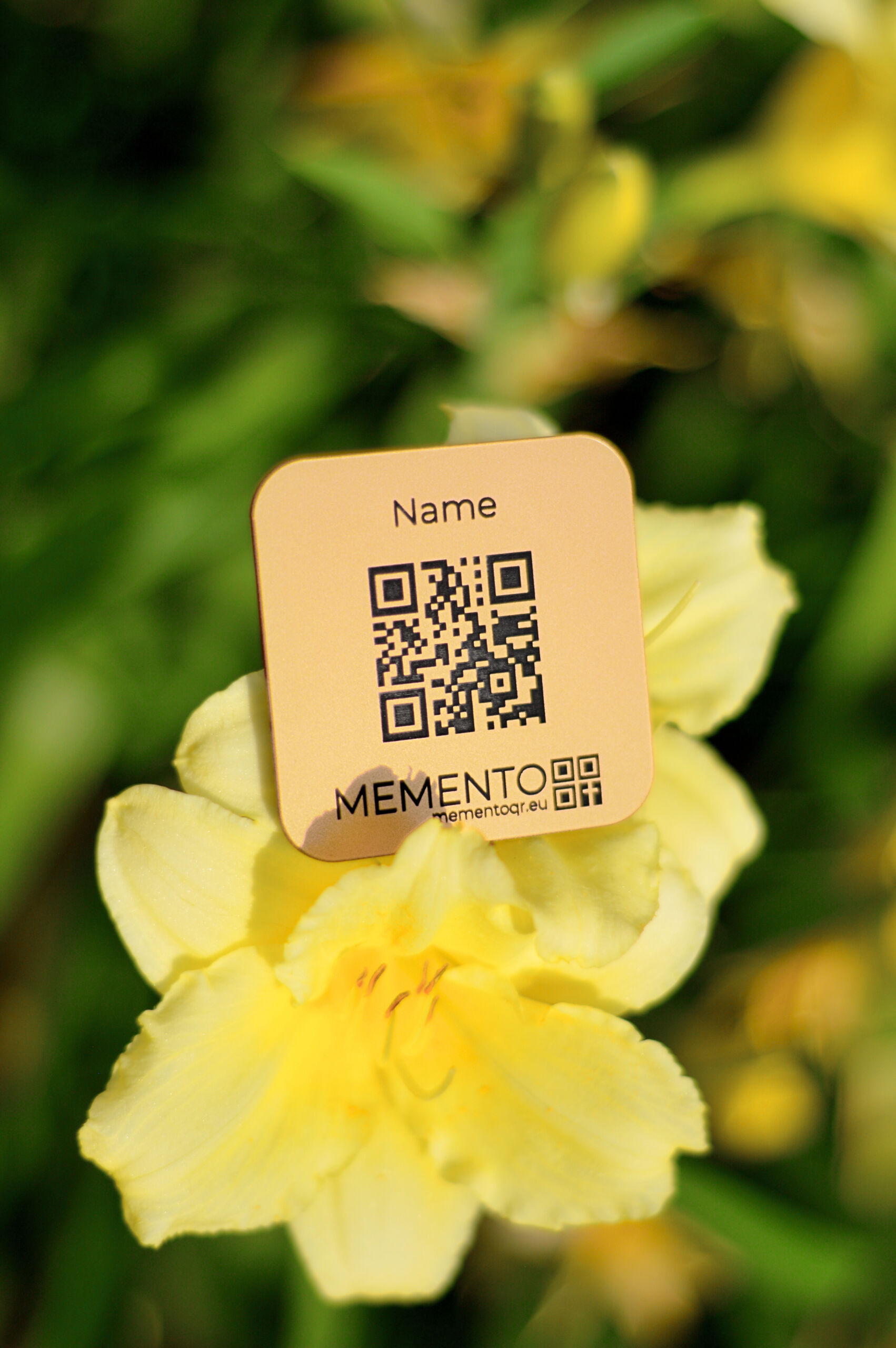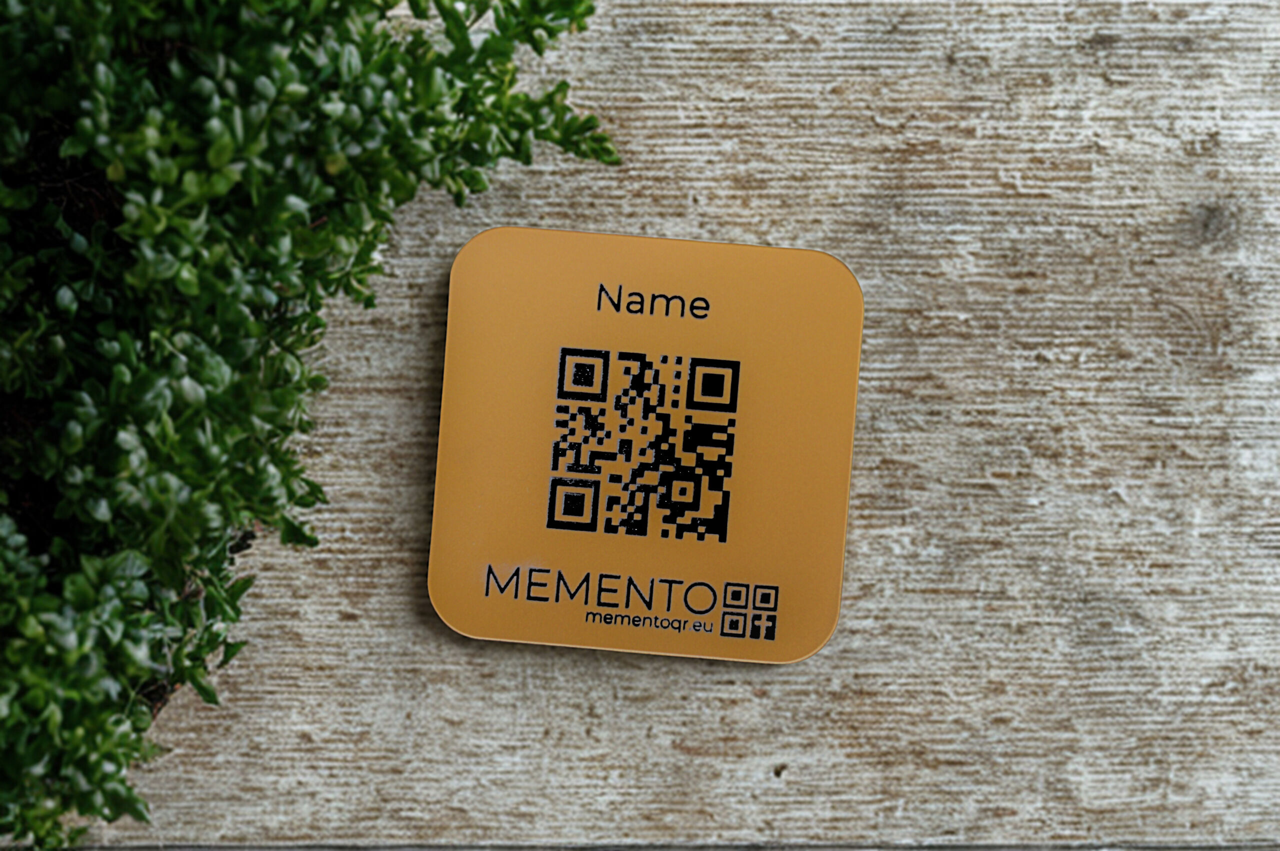 Időtálló, elegáns tábla, amely QR-kód vagy NFC beolvasásával összeköt a digitális emlékoldallal – sírhelyre vagy más emlékhelyre is méltóan elhelyezhető.